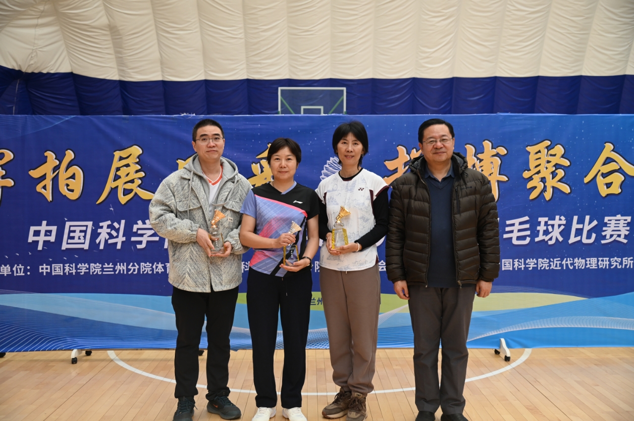 經(jīng)過激烈比拼,蘭州化物所、近代物理所、西北研究院代表隊分別獲混合團體賽冠軍、亞軍和季軍;蘭州分院機關(guān)、青海鹽湖所和西北高原所代表隊分別獲優(yōu)秀組織獎、團結(jié)拼搏獎和體育道德風尚獎。蘭州化物所文澤東、近代物理所封安輝和青海鹽湖所王懷有分別獲男子單打冠軍、亞軍和季軍;近代物理所吳曉霞、蘭州化物所楊恩芳和西北高原所陳曉澄分別獲女子單打冠軍、亞軍和季軍。